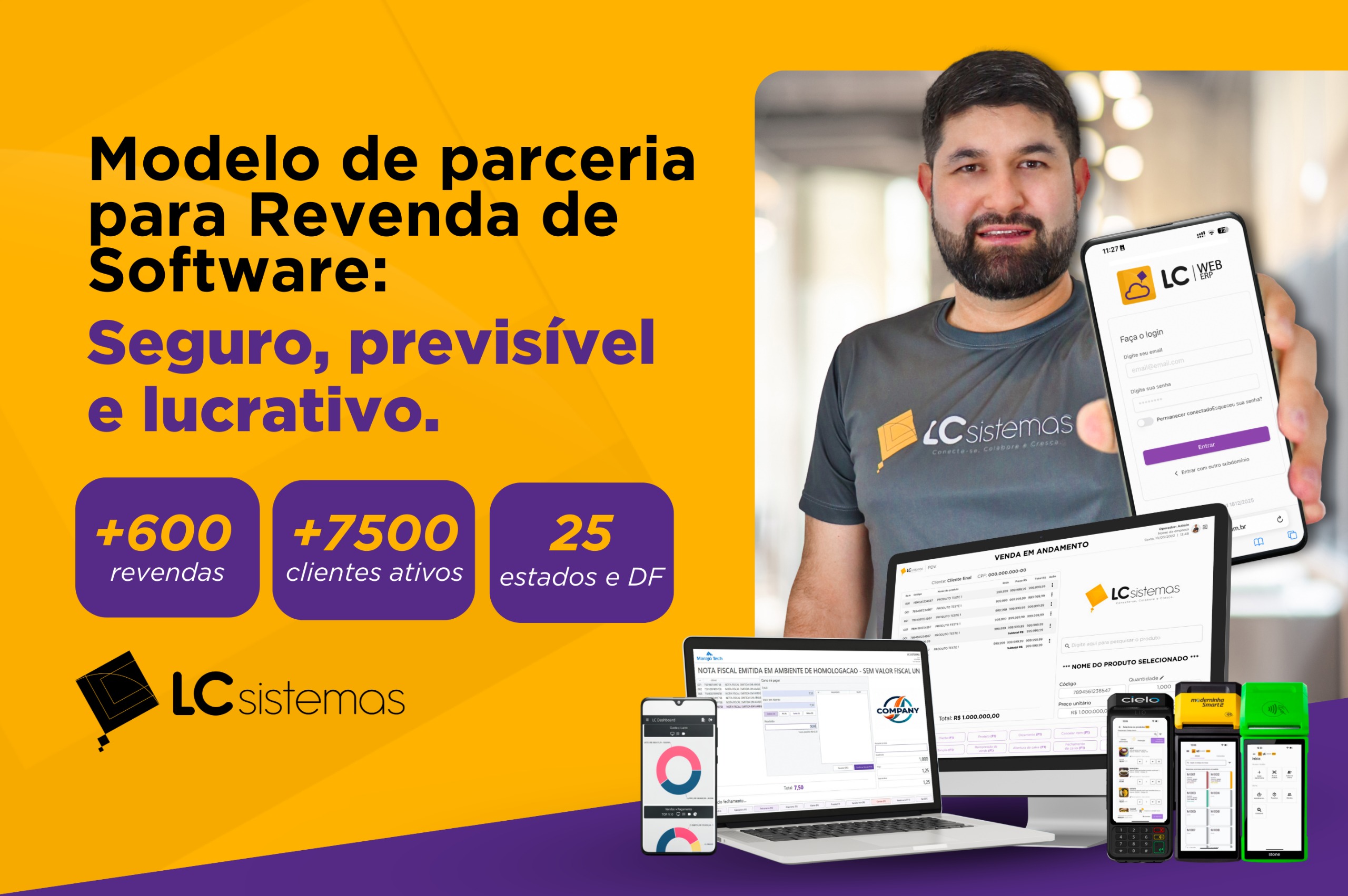 Quando o assunto é Revenda de Software, a LC se destaca por ter o melhor e mais lucrativo modelo de parceria para revendedores.Representando uma rede de mais de 500 revendas parceiras, atendendo acima de 20.c00036 PDVs e com mais de 7.c00036 usuários ativos, nosso compromisso é com o sucesso compartilhado.A LC é marcada pela inovação, confiança e suporte excepcional, além de oferecer treinamentos eficazes para o crescimento contínuo de nossos parceiros. Com a LC, a parceria vai além dos lucros... é transformação de vida!